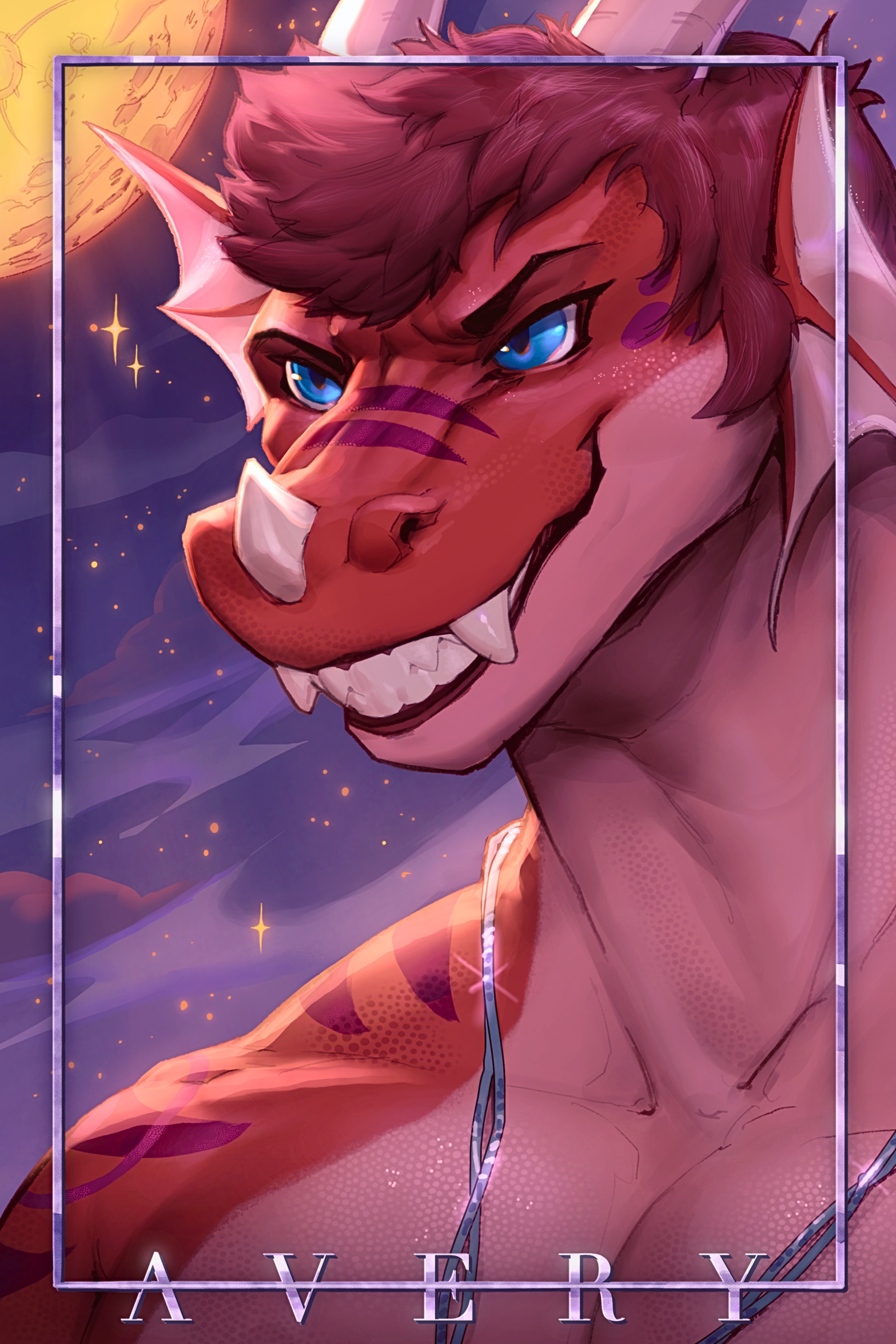 A finely detailed painting of your character(s), with a gradient background.